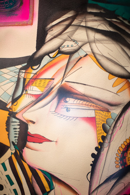 Daniel Pap's original paintings are heavily influenced by surrealism, cubism, impressionism, art deco and traditional Japanese art. His artworks are created with watercolour on paper technique but also include other media, such as silk, wood and acrylics.