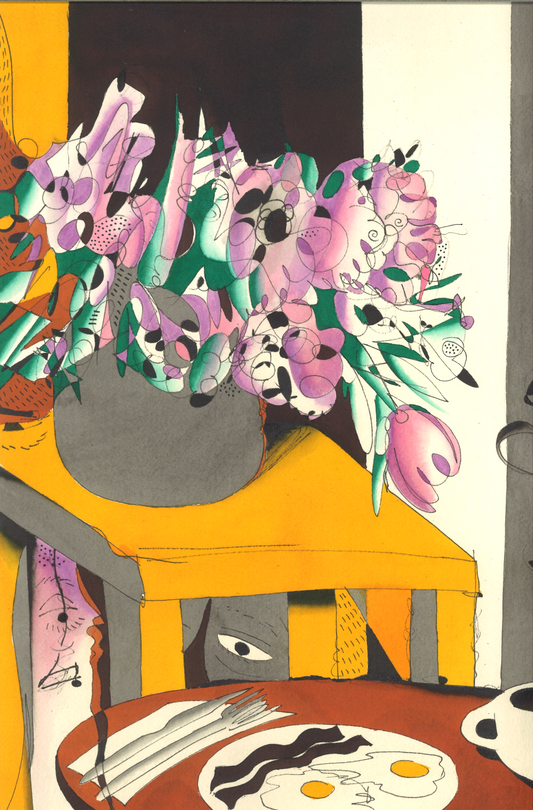 Some of his original artworks come framed and shipping rates apply accordingly.