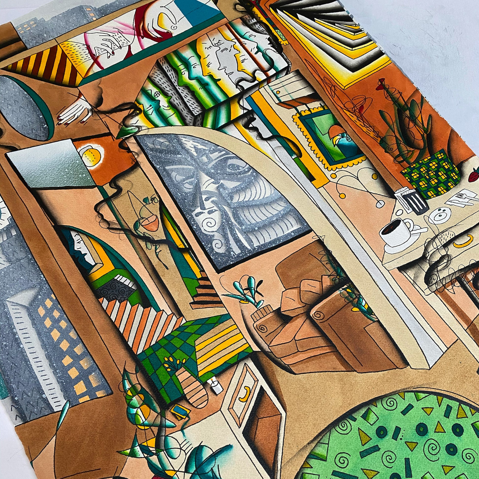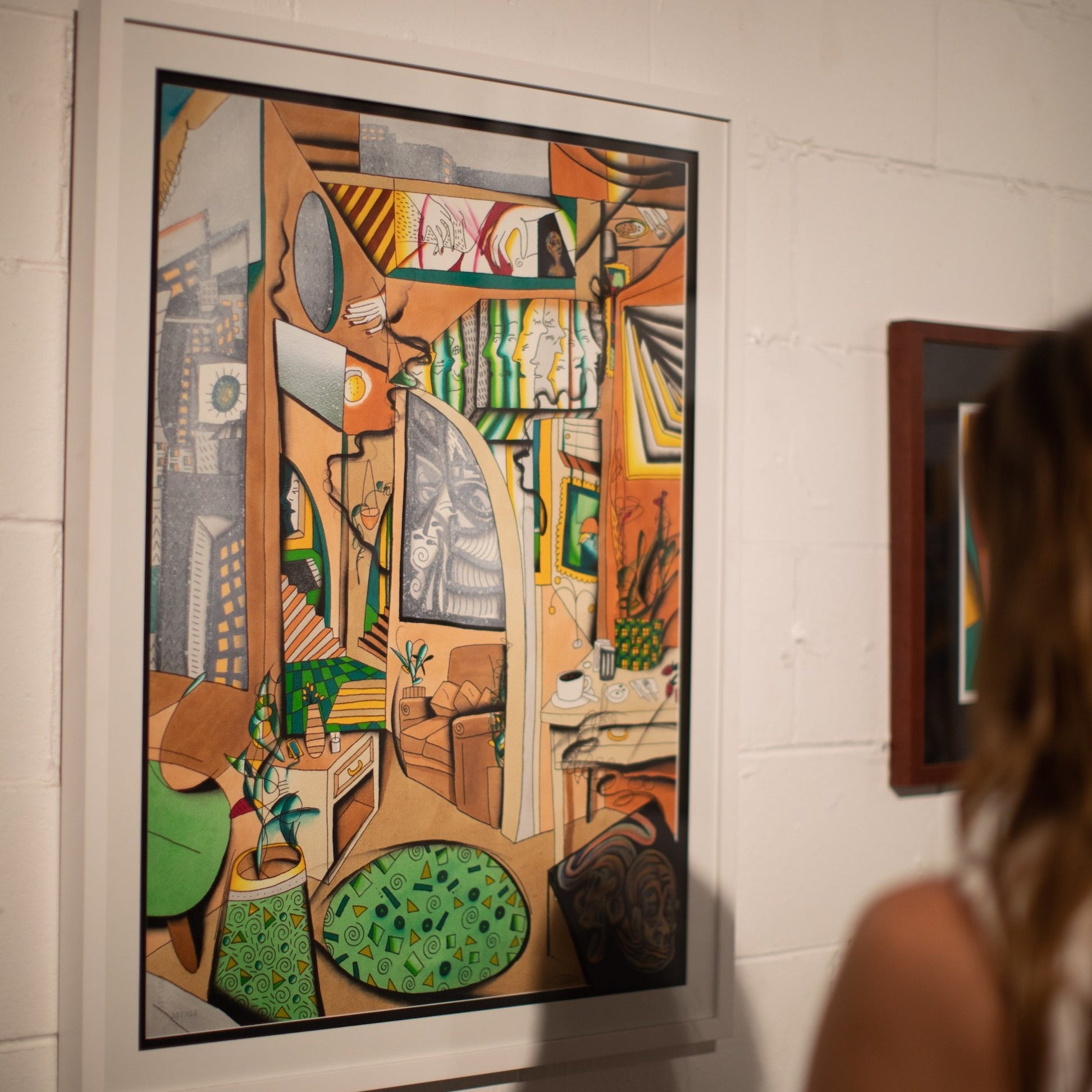 'Stay Inside' is a collaboration with Sam Arnold, done during the first Australian Covid lockdown in 2020. White-framed watercolour painting, 80 cm x 100 cm, ready to hang.